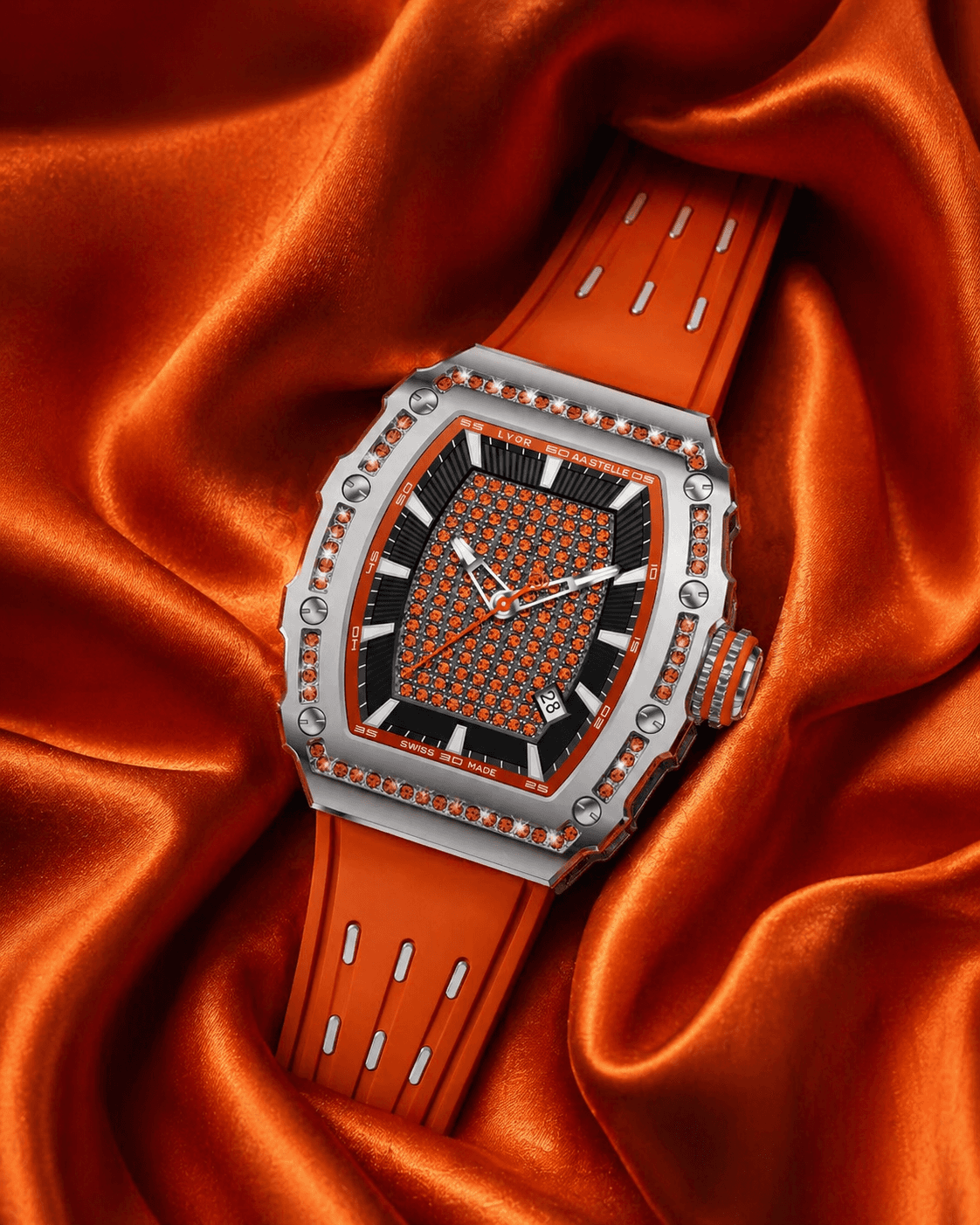 The AA SHQIPE collection is a creation entirely designed in Switzerland by LYOR, powered by a personalized quartz movement. It embodies a vision of purity, strength, and a bold aesthetic.